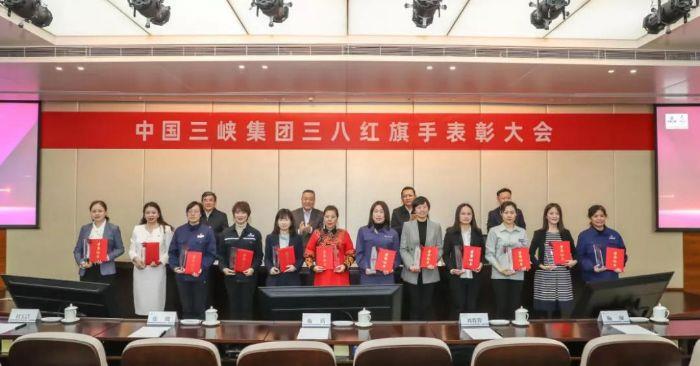 三峽集團(tuán)領(lǐng)導(dǎo)為三八紅旗手頒獎。