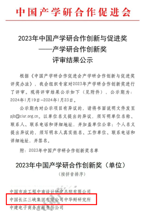本網(wǎng)訊(胡雪辰 葉孜)近日,中國產(chǎn)學(xué)研合作促進(jìn)會公示2023年中國產(chǎn)學(xué)研合作創(chuàng)新與促進(jìn)獎評審結(jié)果,其中三峽集團(tuán)生態(tài)工程中心長江生物多樣性研究中心中華鱘研究所(以下簡稱中華鱘研究所)榮獲“產(chǎn)學(xué)研合作創(chuàng)新獎”,長江生物多樣性研究中心主任專業(yè)師黃桂云榮獲“產(chǎn)學(xué)研工匠精神獎”。