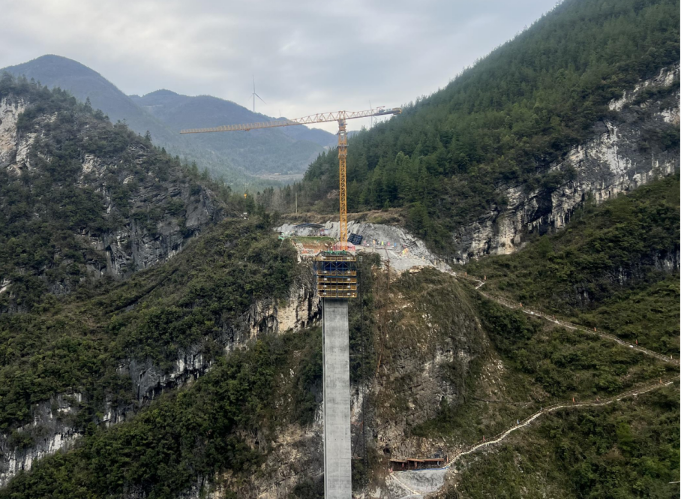 ▲?重慶奉節菜籽壩抽蓄電站雙龍大橋1號墩柱建設現場 三峽建工供圖