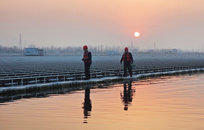 入冬以來,安徽淮南峽潘光伏電站運維人員積極做好水面漂浮式光伏電站巡檢工作。冬季水面較為寒冷,運維人員穿戴好防護套裝,準備充足工器具后在水面進行匯流箱、浮體檢修,主要檢修設備穩定性、浮體穩固性等。高質量、常態化巡檢、精準做好隱患排查是筑牢水面漂浮式光伏電站安全穩定運行的基礎。場站將持續開展各項培訓、檢修工作,確保冬季電站高效運行。