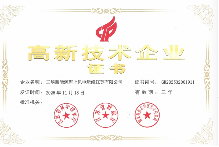 這里是三峽能源江蘇運維公司,國內體量最大的海上風電運維企業,也是三峽集團海上風電專業化運維平臺,2017年落戶江蘇鹽城,運維裝機占全國18.03%,拿下國家級專精特新“小巨人”,國家高新技術企業連續5年經營業績考核A級。